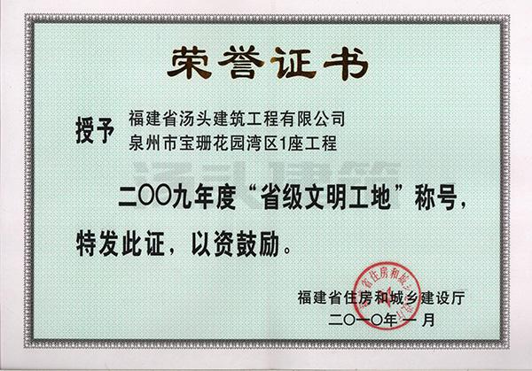 2009年 泉州市宝珊花园湾区1座工程-省级文明工地证书2