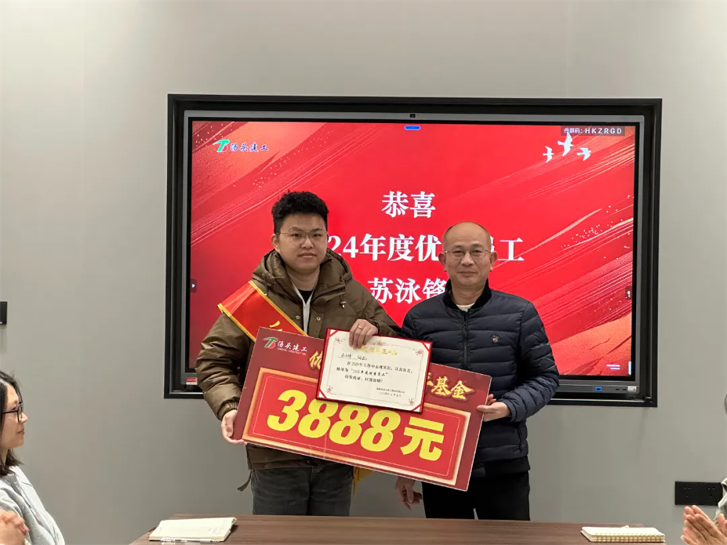 大会率先进入优秀员工评选环节。过去一年,面对复杂多变的市场环境与艰巨的项目挑战,公司员工坚守岗位、开拓创新。评选过程中,各位候选人凭借价值观匹配、突出业绩、工作能力、创新精神与团队协作能力,展开激烈角逐。最终经营部苏泳锋脱颖而出,成为集团公司2024年度优秀员工,为全体员工树立起标杆。